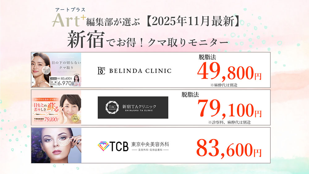 クリニックごとにクマ取りの名医や費用をまとめしました。